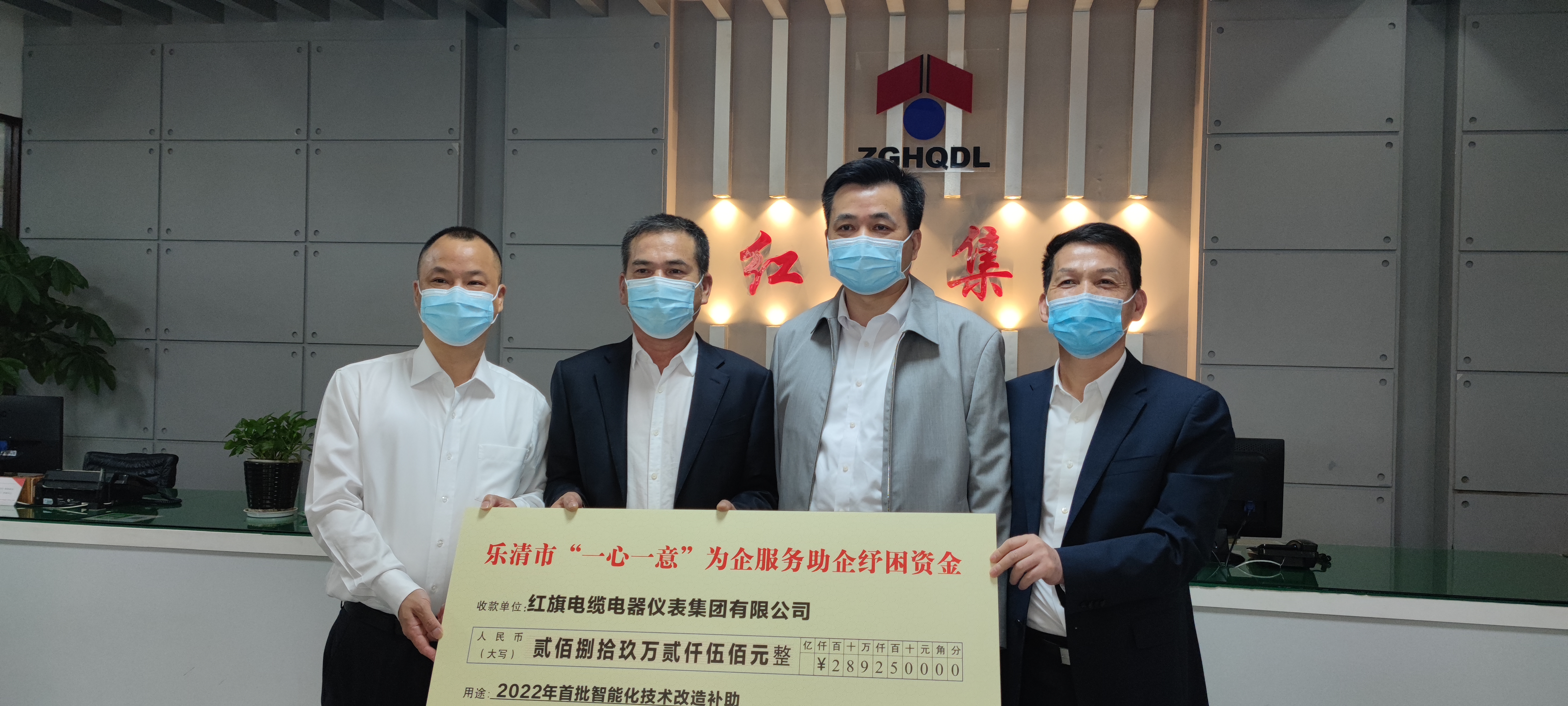 調研結束前徐建兵書記說:等到紅旗集團二期廠房改擴建工程完成后,我一定再來看望大家!同時代表市委和市府向紅旗集團“派發”了2022年首批智能化技術改造補助資金2892500元,并與集團領導合影留念;集團總裁王春存表示衷心感謝市委和市府領導的關心與支持,在今后的工作中紅旗人將繼續努力,堅定“本土情懷”而不移,為樂清經濟發展貢獻出自己的綿薄之力。